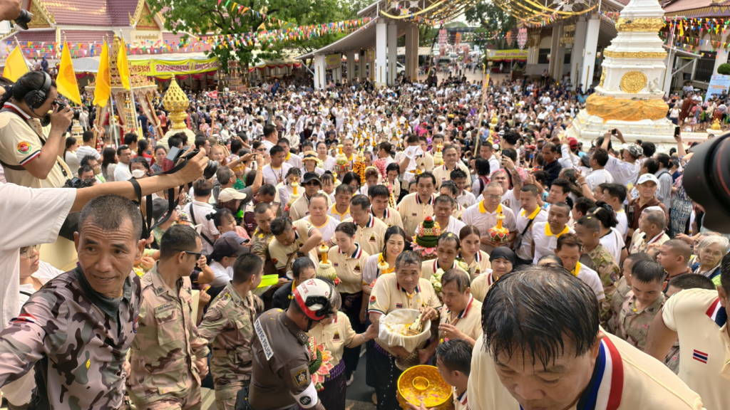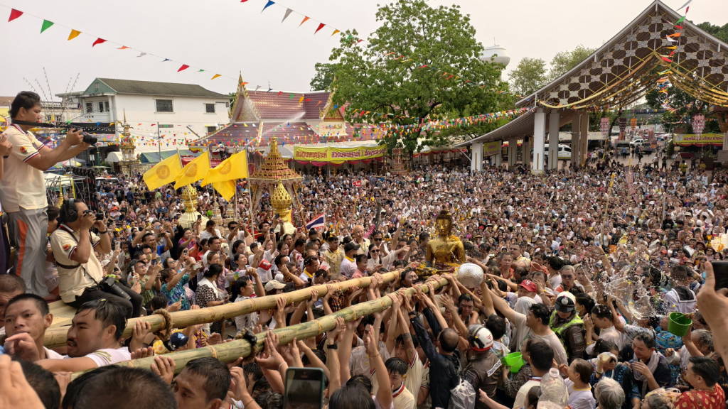 พลังศรัทธา ชาวหนองคาย ชาว สปป.ลาว ดารา นักร้อง นักแสดง ร่วมกันอัญเชิญหลวงพ่อพระใสพระพุทธรูปศักดิ์สิทธิ์คู่บ้านคู่เมืองหนองคาย ขึ้นประดิษฐานภายในพระอุโบสถวัดโพธิ์ชัย พระอารามหลวง ถือเป็นการปิดงานมหาสงกรานต์อีสานหนองคาย และสมโภชสรงน้ำหลวงพ่อพระใส “สงกรานต์ผ้าขาวม้า สมมาหลวงพ่อพระใส” ประจำปี 2569 อย่างสมบูรณ์