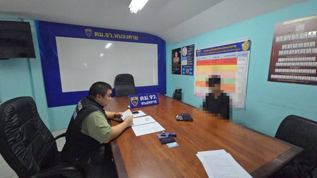 พ.ต.ท.ธียาฌพัตท์ รังสิพราหมณกุล รอง ผกก.ตม.จว.หนองคาย ได้สอบปากคำ ผู้ต้องหาทราบว่า ตนเองได้รับการชักชวนจากนายแดง เป็นคนชาวเวียดนามให้ตนเองเดินทางไป สปป.ลาว โดยเครื่องบินทางสนามบินสุวรรณภูมิ เพื่อไปลงที่สนามบินวัดไต สปป.ลาว และได้มีคนมารับไปที่โรงแรมมโนรมย์ ที่ เวียงจันทน์ พักที่ห้อง 508 และได้ไปสแกนใบหน้าที่ชั้น 7 ของโรงแรมมโนรมย์ เวียงจันทน์ โดยที่ตนเองได้เปิดบัญชีของธนาคารต่างๆดังนี้ 1.ธนาคารกรุงศรีอยุธยา สาขาจำไม่ได้แต่เปิดที่กรุงเทพฯ 2.ธนาคารกรุงเทพ สาขาจำไม่ได้แต่เปิดที่กรุงเทพฯ 3.ธนาคารกรุงไทย สาขาจำไม่ได้แต่เปิดที่กรุงเทพฯ 4.ธนาคารออมสิน สาขาจำไม่ได้แต่เปิดที่กรุงเทพฯ 5.ธนาคารยูโอบี สาขาจำไม่ได้แต่เปิดที่กรุงเทพฯ และในแต่ละครั้งที่มีเงินเข้าบัญชีของตนเองก็จะมีคนไปรับให้ตนไปสแกนใบหน้าและได้ค่าสแกนใบหน้าครั้งละประมาณ 25,000 บาท ต่อครั้ง โดยที่ตนเองก็จะพักอยู่ที่โรงแรมมโนรมย์ เวียงจันทน์ สปป.ลาว ตลอดและเมื่อมีเงินเข้าบัญชีตน และจะเป็นแบบนี้ตลอดบางทีก็เดือนละครั้งแล้วแต่จะมีเงินโอนเข้าบัญชี จนกระทั่งวันนี้ตนเองจะเดินทางกลับไทยเพื่อจะไปเยี่ยมมารดาที่บ้าน อ.กัลยาณิวัฒนา จ.เชียงใหม่ โดยที่ตนเองยังไม่ทราบว่ามีหมายจับจนมาถูกเจ้าหน้าที่ตรวจคนเข้าเมืองจังหวัดหนองคายควบคุมตัวและแจ้งข้อกล่าวหาให้ทราบ
