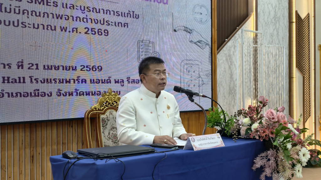 วันนี้ (21 เม.ย. 69) ที่โรงแรมพาร์คแอนด์พูลรีสอร์ท จังหวัดหนองคาย นายกิตติศักดิ์ ธีระวัฒนา รองผู้ว่าราชการจังหวัดหนองคาย เป็นประธานในพิธีเปิดการสัมมนาเชิงปฏิบัติการ “สอจ.ต่อยอดเครือข่ายภาครัฐ และภาคเอกชน” โครงการส่งเสริม SMEs และบูรณาการการแก้ไขปัญหาสินค้าไม่มีคุณภาพจากต่างประเทศ ที่สำนักงานอุตสาหกรรมจังหวัดหนองคาย (สอจ.) และสำนักงานมาตรฐานผลิตภัณฑ์อุต สาหกรรม (สมอ.) จัดให้มีขึ้น