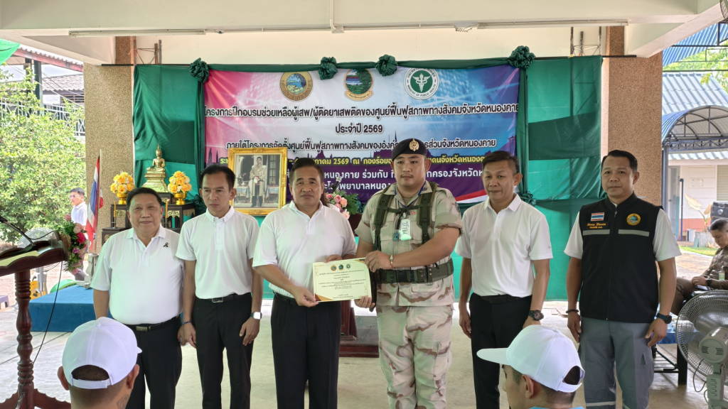 เมื่อเวลา 10.00 น.วันนี้ (23 เม.ย. 69) ณ กองร้อยอาสารักษาดินแดนจังหวัดหนองคาย ที่ 1 นายศรัณย์ศักด์ ศรีเครือเนตร ผู้ว่าราชการจังหวัดหนองคาย เป็นประธานในพิธีเปิดโครงการฝึกอบรมช่วยเหลือผู้เสพ ผู้ติดยาเสพติดของศูนย์ฟื้นฟูสภาพทางสังคม จังหวัดหนองคาย ประจำปี 2569 ภายใต้โครงการจัดตั้งศูนย์ฟื้นฟูสภาพทางสังคมขององค์การบริหารส่วนจังหวัดหนองคาย ที่จังหวัดหนองคาย โดย อบจ.หนองคาย จัดให้มีขึ้น
