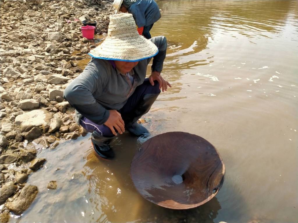วันที่ 29 ก.พ. 2563 ผู้สื่อข่าวได้เดินทางไปที่บริเวณริมฝั่งแม่น้ำโขง หมู่ที่ 2 ตำบลบ้านม่วง อำเภอสังคม จังหวัดหนองคาย พบ นางน้อม ศิริโชค อายุ 37 ปี ที่อยู่ 254 หมู่ที่ 2 ตำบลบ้านม่วง อำเภอสังคม จังหวัดหนองคาย พร้อมชาวบ้านจำนวนหนึ่งกำลังร่อนทองในลำน้ำโขง ซึ่งถือเป็นอาชีพที่สืบทอดกันมานานในพื้นที่